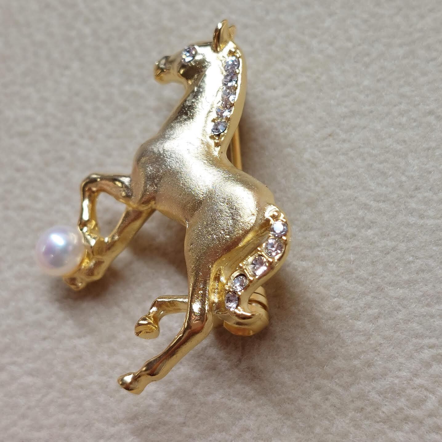 干支ブローチ 馬|淡水真珠付き 縁起の良いミニアクセサリー(オーガンジーポーチ入り)
